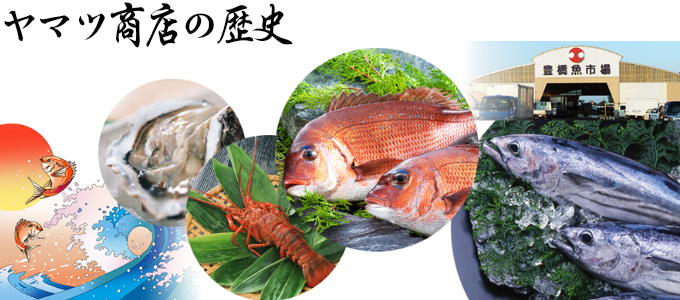 ヤマツ水産卸株式会社は明治23年に愛知県豊橋市魚町で鮮魚卸商として開業。第2次大戦中と戦後の一時期は、統制による組合共同事業にて自主営業を休止しましたが、昭和26年統制解除後は、再び鮮魚の卸・小売商として、魚町で事業を再開しました。